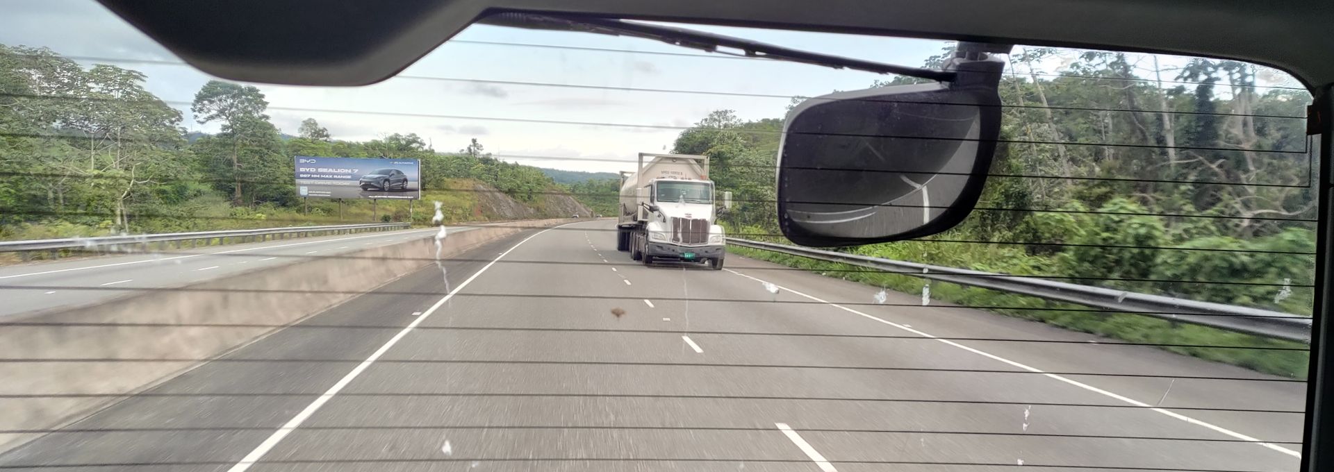 Dar altceva e șoc și groază. Pentru circa 75  de kilometri de autostradă din asta – după standarde europene, am numi asta drum Express, costul e J$1900, adică 10 EURO  .