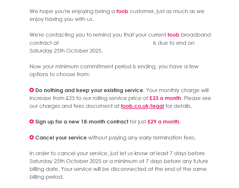 Mi-au trimis mail, civilizat, să îmi spună că perioada contractuală expiră pe 25 octombrie și că am opțiuni: