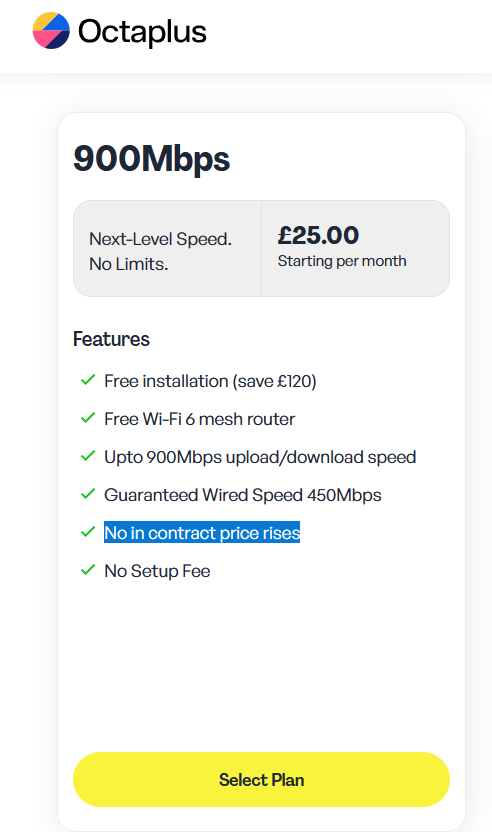 Sau pot să mă angajez într-un contract nou pe 18 luni, pentru numai 29 de lire pe lună. Față de 25, cât plătesc acum pentru Gigabit din ăla de 900Mbps.