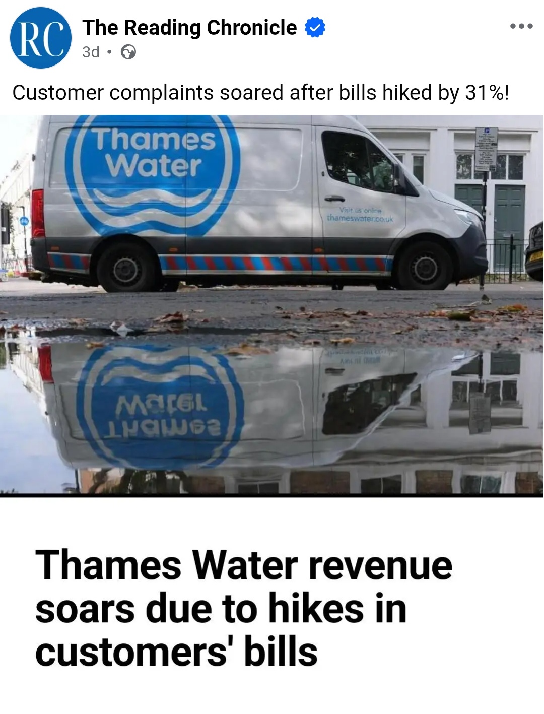 Din motive obiective, că au deversat căcat in sursele de apă, adică nu au tratat canalizările corespunzător. Plus alte motive de management și că nu înlocuiesc destul de repede infrastructura și cam au pierderi, de incepe să arate ca prin București. Râdeam de București când arăta așa. Acuma , de ceva ani adică, sunt izvoare și prin Reading. Mai mici , dar cresc.