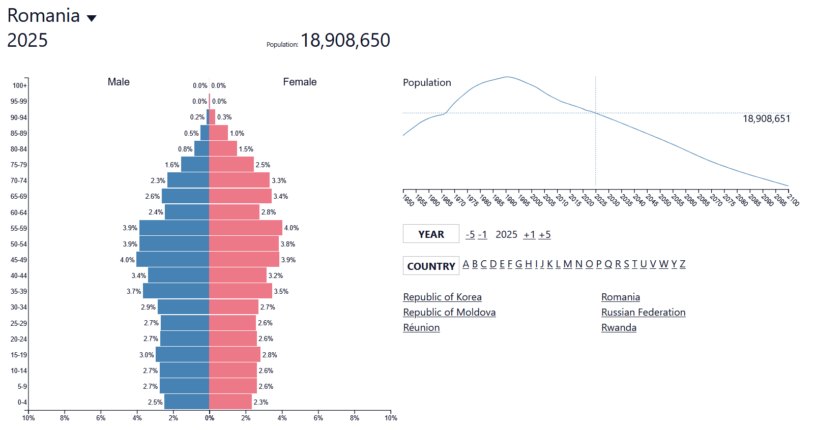 În sensul că deși România pierde mai multă populație, raporat la câți eram, pierderea e un pic mai sănătoasă, momentan, dacă te uiți la procentul de copii versus adulți.