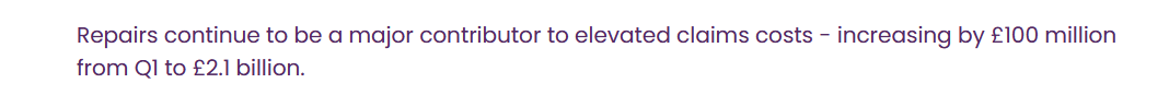 Ei zic că le-au crescut costurile de reparații cu cam 100milioane de lire la 2.1 lire pe trimestru.