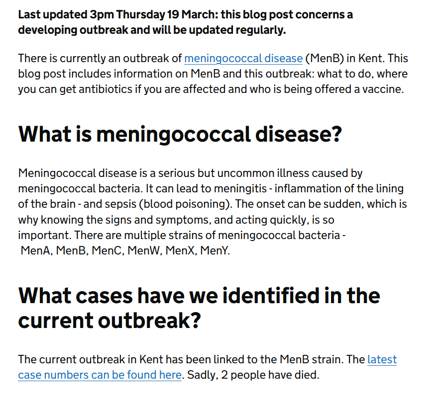 Au ăștia o ciumă nouă în Kent, MenB. ( De la Meningită de tip B). Am programat articolul mai târziu, că nu se știe…