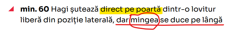 I-auzi, el a șutat direct pe poartă, dar mingea, bă, dată dracului, s-a dus pe lângă. Efectiv…