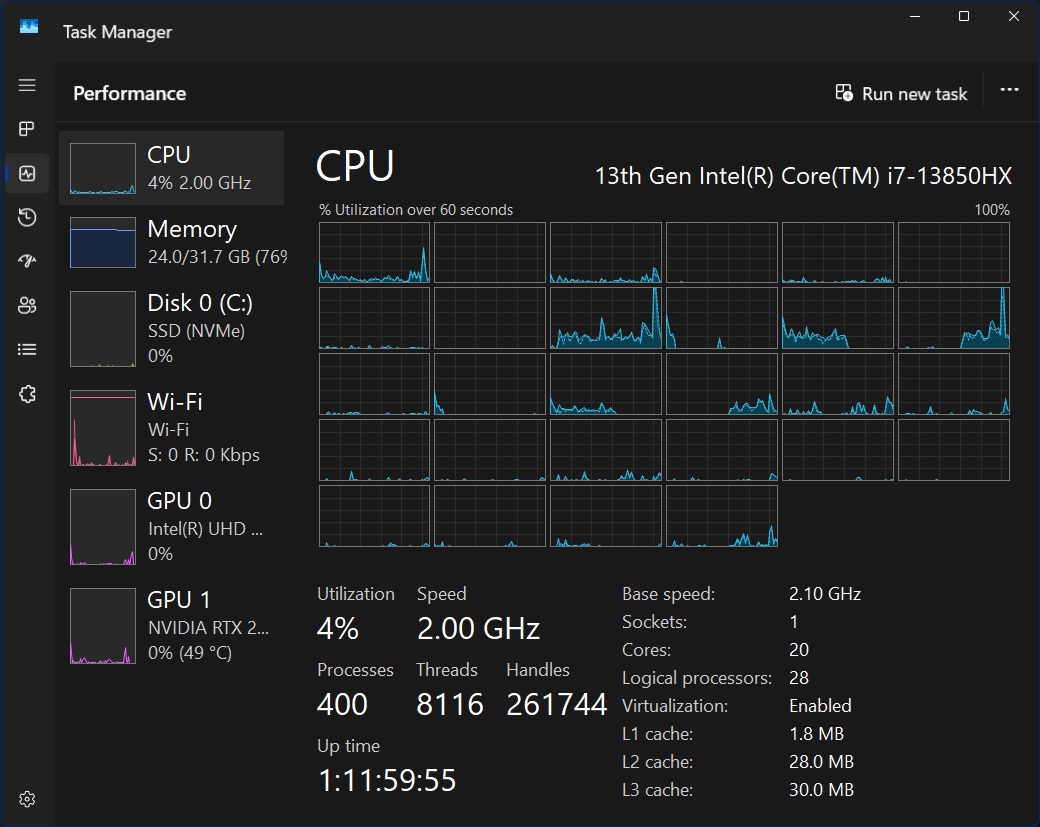În definitiv am găsit un ștou. Am dezactivat ”efficiency cores” – ăstea sunt niște nuclee subalimentate, care să rezolve taskuri simple cu consum redus de curent, doar că nu știe nici pula să le facă management și alocă procese pe ele aiurea. AȘ PUTEA, condițional optativ, să fac setări din task manager și să forțez aplicațiile active care folosesc alea să nu le mai folosească și să mă lase dracului în pace, dar cine pula mea stă de asta și de ce.