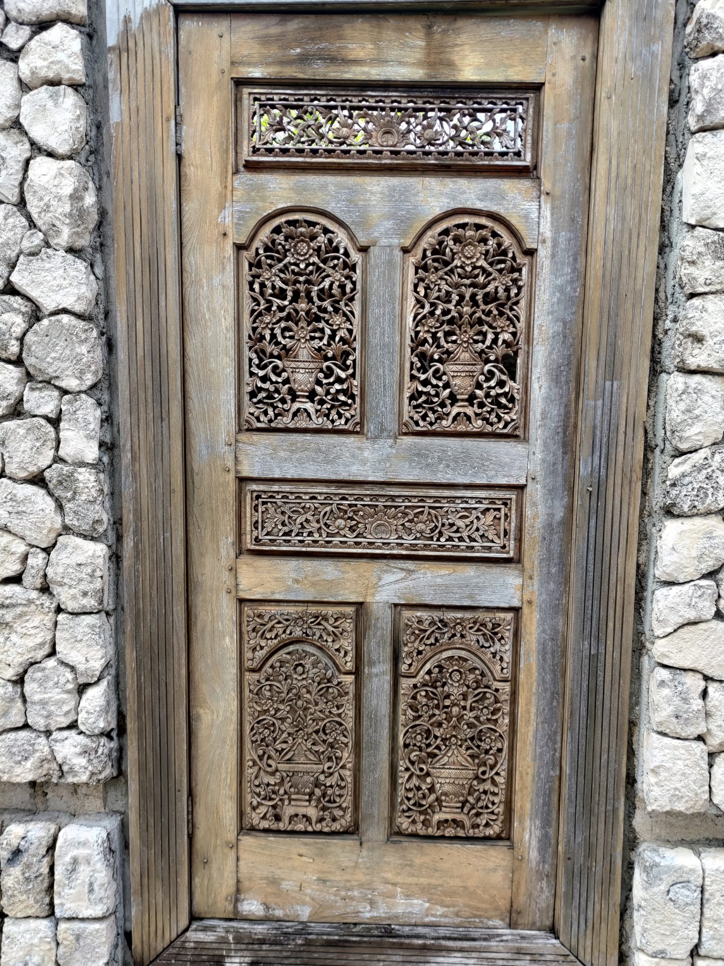 Hai să mai pun două. Am găsit o ușă care nu ducea nicăieri – adică ieșea de pe proprietate ( n-am putut verifica, era încuiată) , dar era mișto, sulptată manual din lemn. Nu știu când și de ce Brâncuși, dar cred că a stăruit ceva timp pe ea, probabil luni, ani.