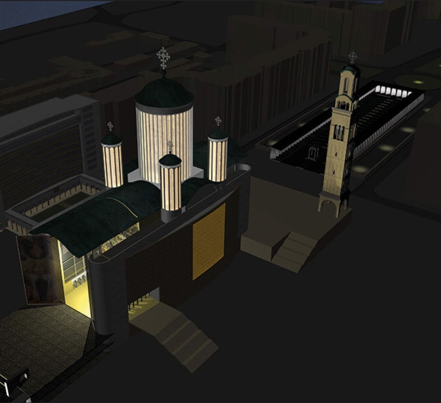 Așa arăta proiectul dumnealui și o ține langa că asta era ăla bunul. Un garaj cu două turle . Dar probabil nu înțeleg eu esența etno religioasă și universalitatea proiectului acestuia.