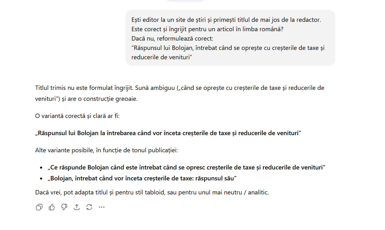 Bine, unora li le scrie cu totul ChatGPT, dar nu contează. Ce vreau să zic e că ar trebui să bage și titlurile în ChatGPT, dacă tot…