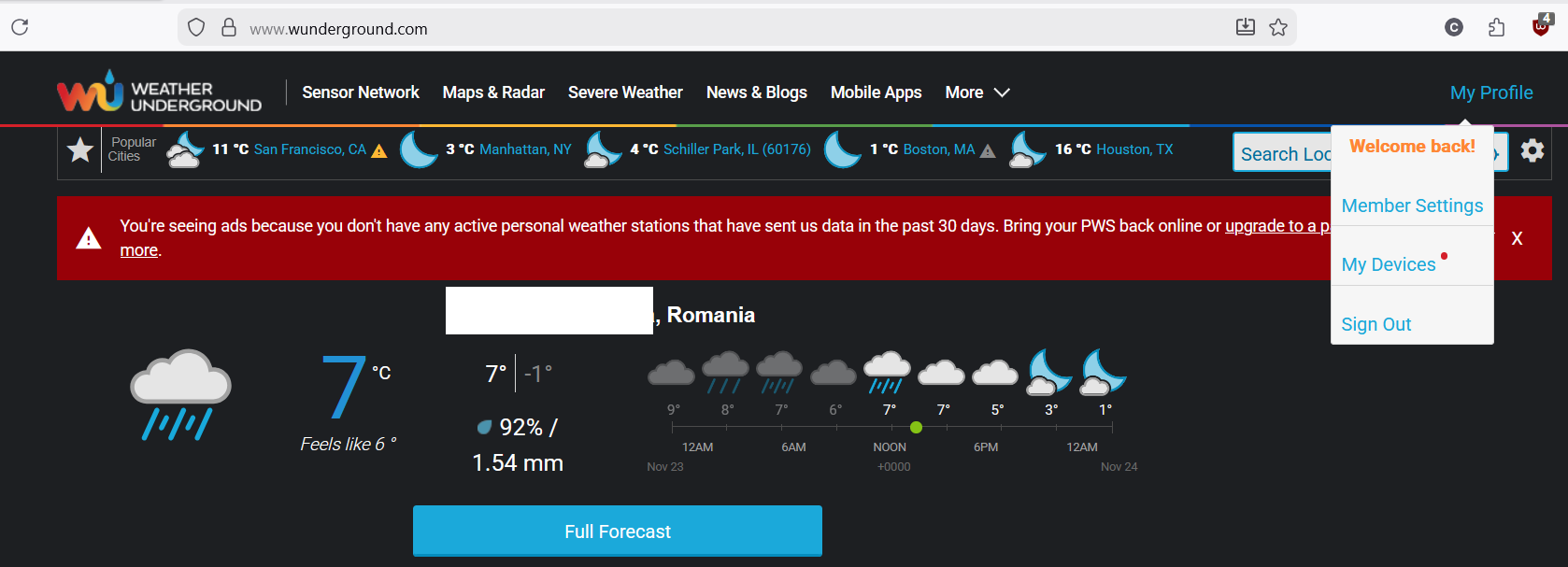 Am cumpărat stația asta meteo știind și agreând faptul că ar urma să transmit date către Wunderground, un serviciu meteo deținut la vremea aia de IBM. Și am încredere în IBM că face lucruri bune. Și face.