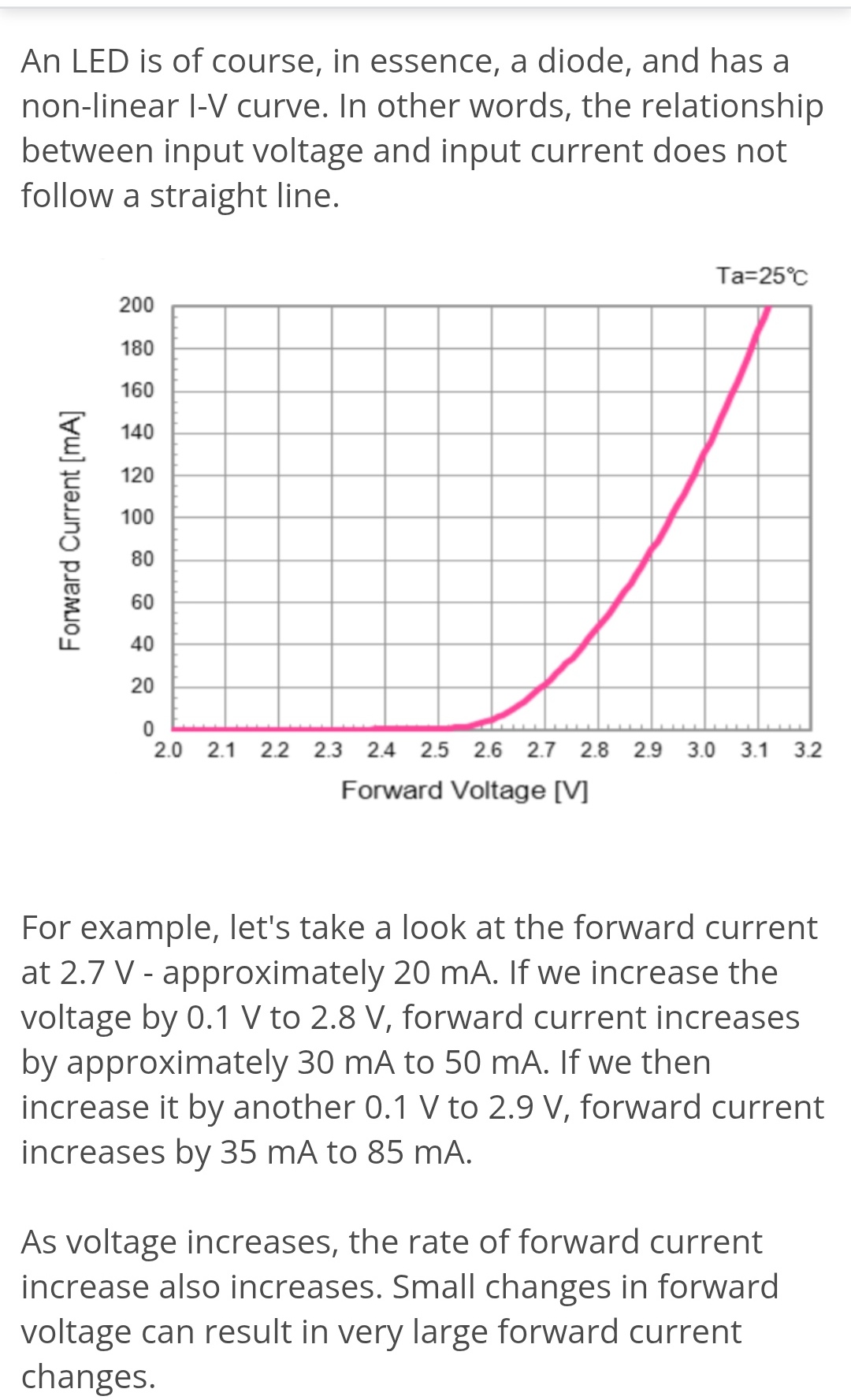 Simplificat da, dar este o aproximare destul de grosieră. Graficul de variație al curentului cu tensiunea e cam ca aici. Dar ăsta e modelul pentru joncțiunea p-n, în practică ledurile cu pricina foarte probabil că au incluse ele o rezistență care aplatizează exponentiala aia. Pot să îți fac un clip să îți arăt că nu creste curentul la limita impedanței sursei, nu până se arde că depășește puterea maxima disipată. Oricum, nici modelul nu e cum îl descrii tu cu tensiune relativ fixă, adică ai o plajă de variație de măcar un volt – și depinde de led, că ledurile… Read more »