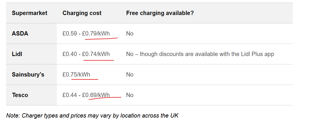 Zici că sunt și prețuri mai mici, nu dacă nu ești pensionar sau lăuză. Dacă mergi ca omul după muncă, maxim am spus! Realist, media consumului la rable electrice e undeva la 190Wh/km – nu știu cât consumă mașina ta, depinde ce ai. Deci ne uităm la 19kwh/100km. Asta costă 14.25 lire, la prețul de 0.75GBP/kwh.