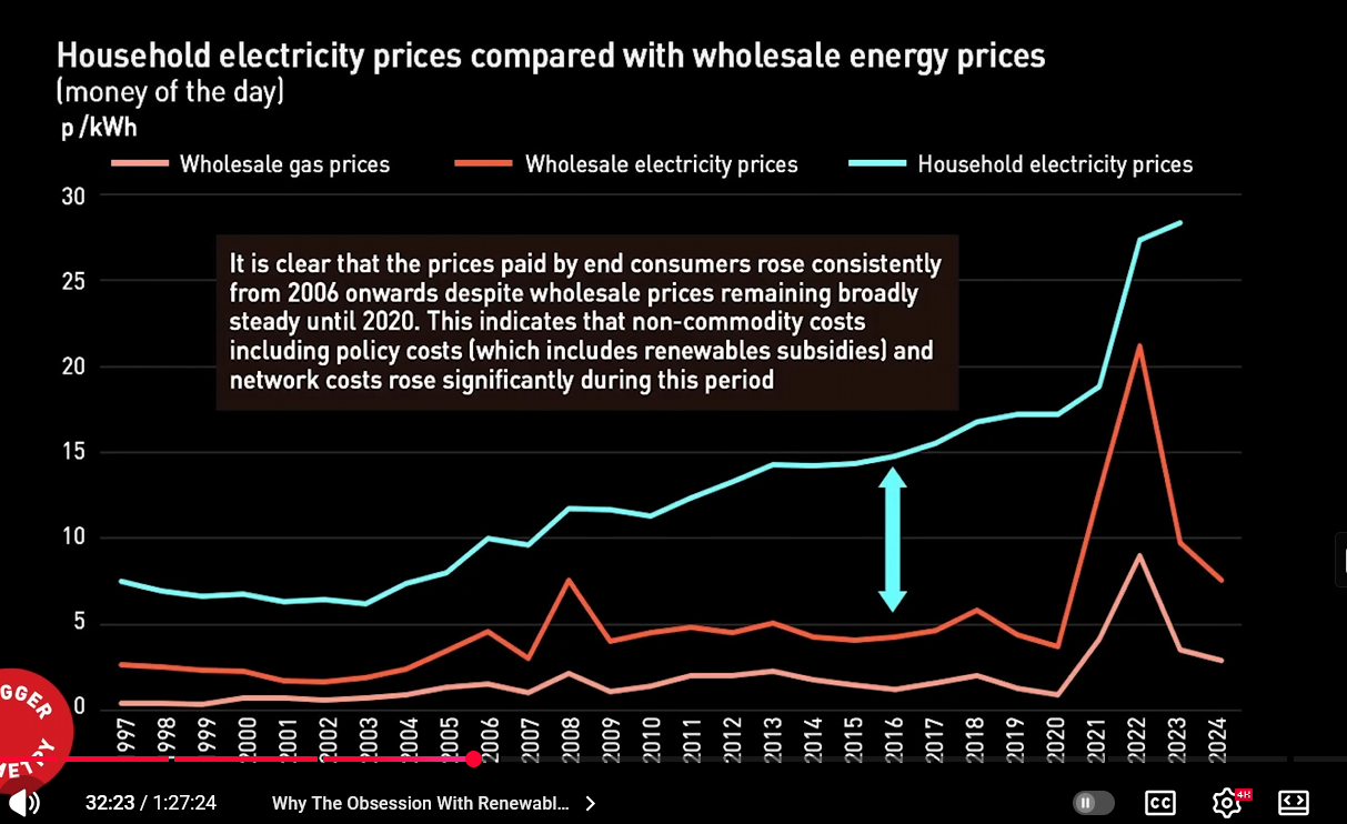 Vedeți-vedeți, nu strâmbați din nas, că graficul ăsta cu divergența dintre prețul de retail e și în România – cât dai tu pe curent și prețl la producător, care se tot deschide, cu taxe, subvenții, de exemplu aici, plătite ălora cu vântul să oprească turbinele că nu le pot căra curentul din diferite motive.
