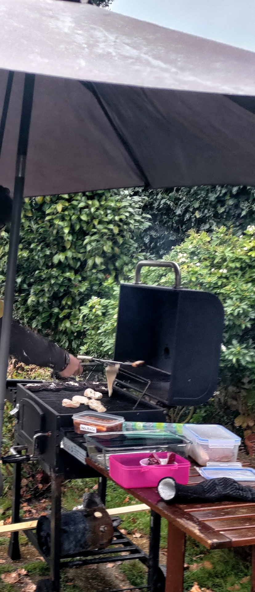 Ultimul grătar pe anul ăsta s-a consemnat pe 22 noiembrie, sub umbrelă, că îmi stingea ploaia cărbunii altfel.