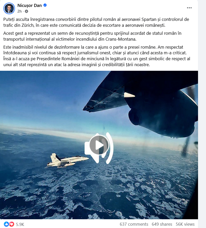 Când a declarat cu treaba că i-au salutat elvețienii să le mulțumească pentru ajutorul cu incendiu, am zâmbit și-atunci. M-am gândit că poate-și fac PR, poate nu – cum o fi, pune și el poze cu avioane pe facebook ca influencierii – și bagă ceva text vag interesant acolo.