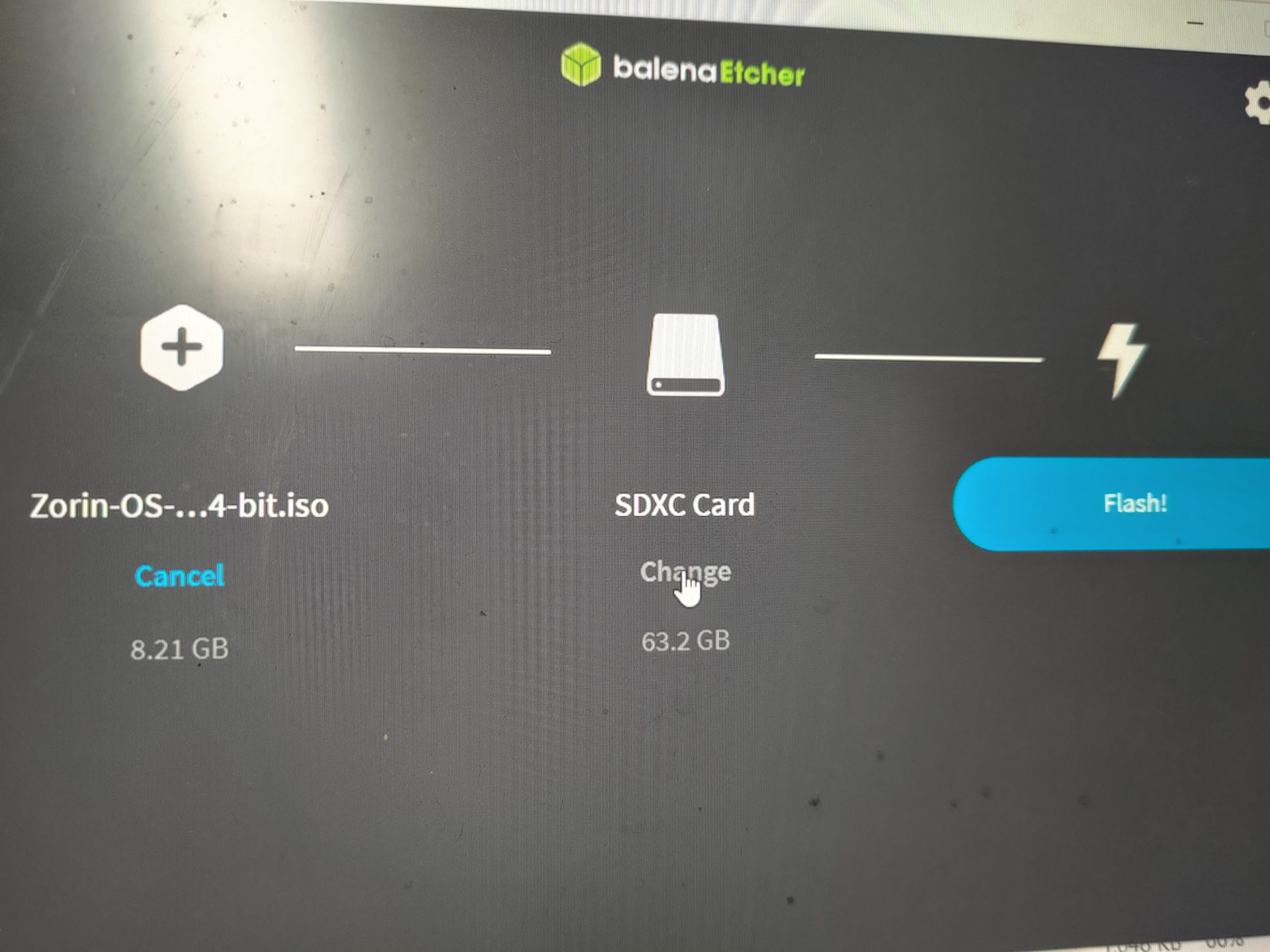 Păpilot automat, am descărcat Zorinosu’, voiam să îl fac boootabil pe stick cu ceva soft pe care îl aveam deja și pe care îl știu, dar nu, că ei recomandă balenaetcher, softul pulii mele. Îl pun pe ăla are doar câteva butoane îmi arată acolo ceva generic flash de 64 de gigabytes, zic cred că asta e că altul nu mai am …