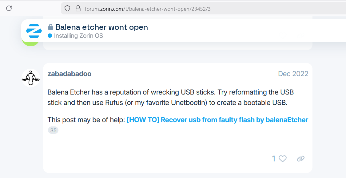 Anyway – cea mai tare schemă e că bootabilul făcut cu balena pizdii, nu bootează. Să le fut copiii și ălora și Zorinoșilor, că ăi promovează în instrucțiunile lor. De ce?