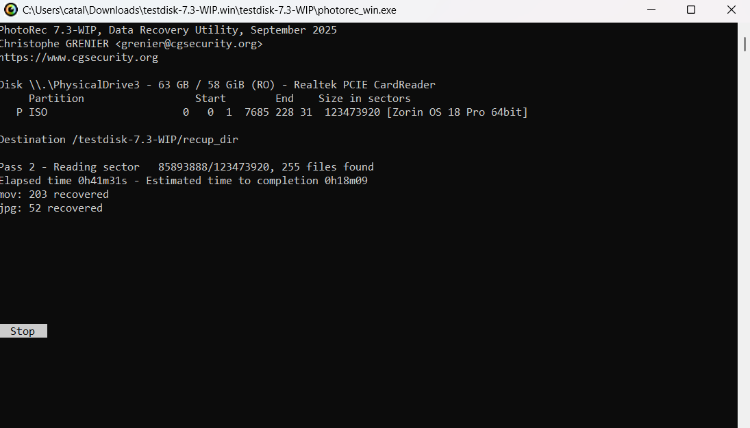 Așa că acuma dau cu photorec_win să vedem ce se mai poate salva.