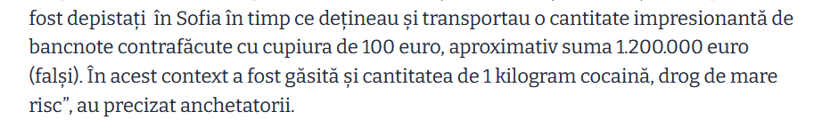 Altceva vreau eu să zic. În știre zice și că ”în context” ( unde era contextul ăla) s-a găsit și mașini de scris la… nu asta, ci un kill de cocaină, monedă forte, la fel ca Euro.