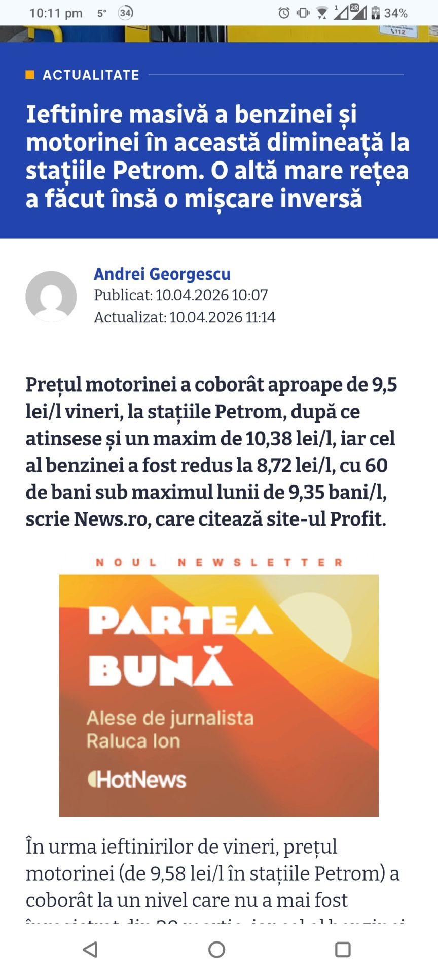 S-a ieftinit azi benzina de la 9.5 la 8.72 de lei, dar doar la Petrom.